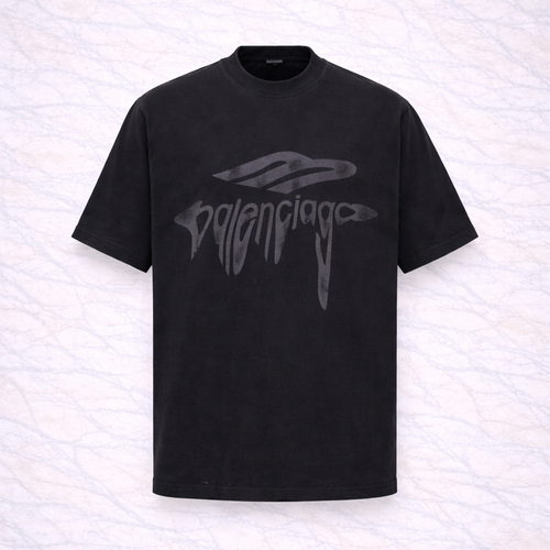 Balenciaga – T-shirt Noir Logo Graffiti Ton-sur-Ton